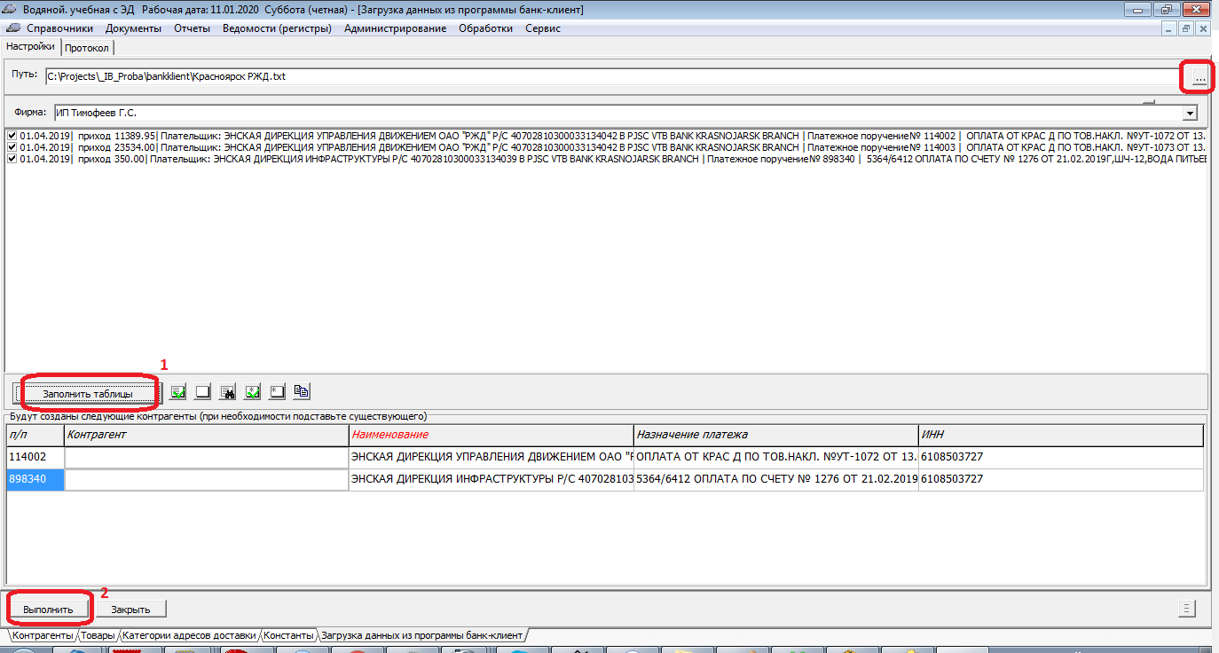 При первой загрузке (или если имя файла всё время меняется) надо указать путь к выгруженному из банковской системы файлу (путь тот, который выбрали в п.1).
