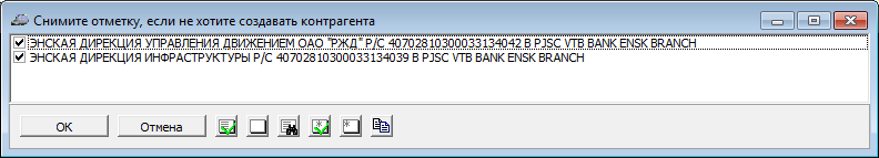 Перед загрузкой будет предложено еще раз подтвердить создание новых записей, если снять флажки, то платежные поручения загрузятся, но контрагент в них останется пустым.