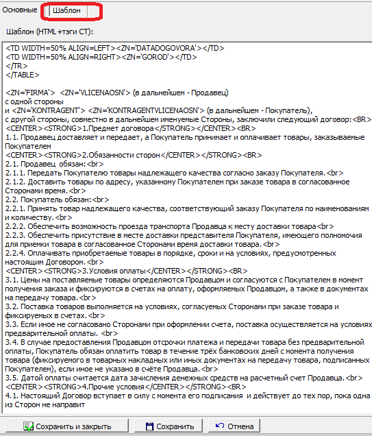 В договоре, помимо тэгов, перечисленных в формате шаблона, могут использоваться некоторые дополнительные тэги.