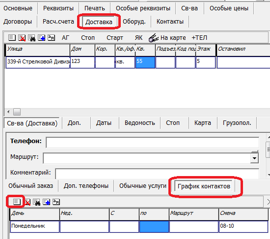 Дни доставки задаются на вкладке «доставка» в таблице «график контактов».