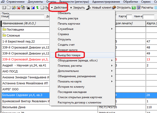 Удобнее ввести документ через меню «действия» из справочника контрагентов