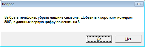 При ответе «да» каждый проблемный номер будет показан для исправления оператором (исправление может потребовать значительного времени, если телефонов неправильного формата много).