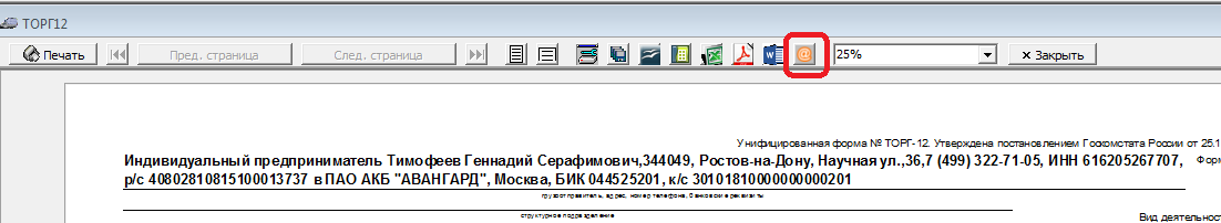 Отправка печатной формы из окна просмотра