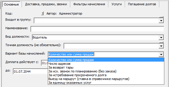 Примечание. Если все водители работают без экспедиторов, то достаточно задавать начисление для водителя, если есть экипажи из двух человек, то нужны отдельные начисления для экспедиторов, дублирующие водительские или с особыми расценками, при этом водитель-экспедитор будет получать 2 вида доплат.