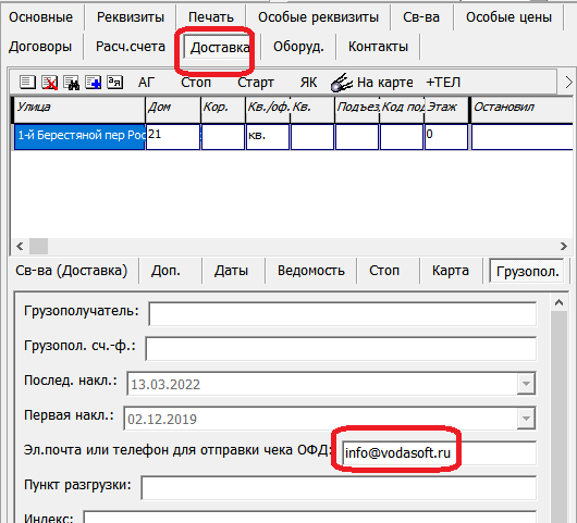 Возможна отправка копии чека на электронную почту или телефон клиента. Для этого необходимо заполнить поле, обозначенное на рисунке: