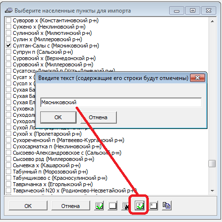 Чтобы отметить все населенные пункты одного района, используйте кнопку
