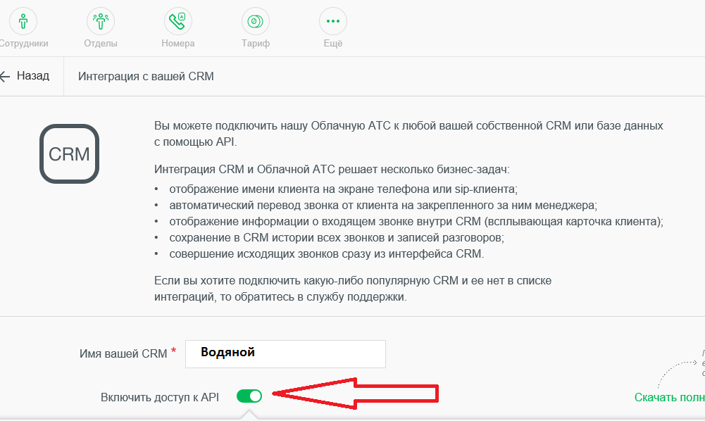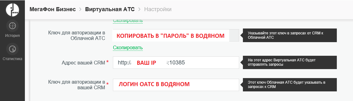 Настройка интеграции «Водяного» с АТС «Мегафон»