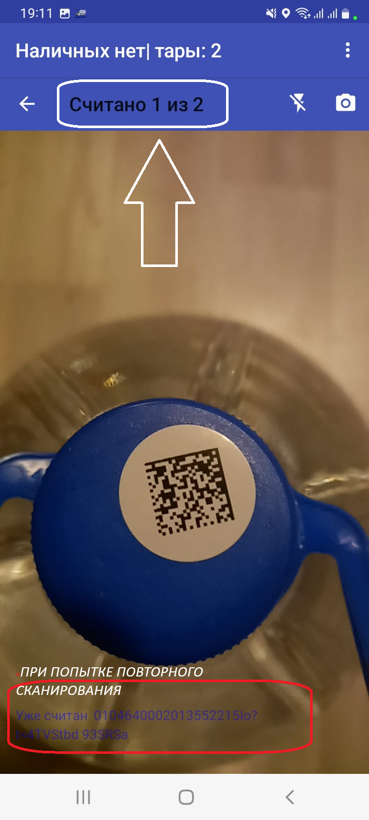 Перед выполнением заказа будет включена камера для сканирования кодов маркировки. Считать надо код с каждой бутыли