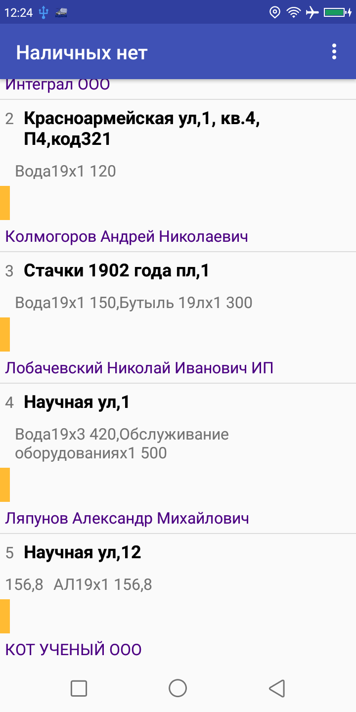 заказа или невыполнении, данных о полученных наличных деньгах и таре. Приложение позволяет считывать коды маркировки и формировать чек на фискальном регистраторе, расположенном в офисе и подключенном к основной программе «Водяной».