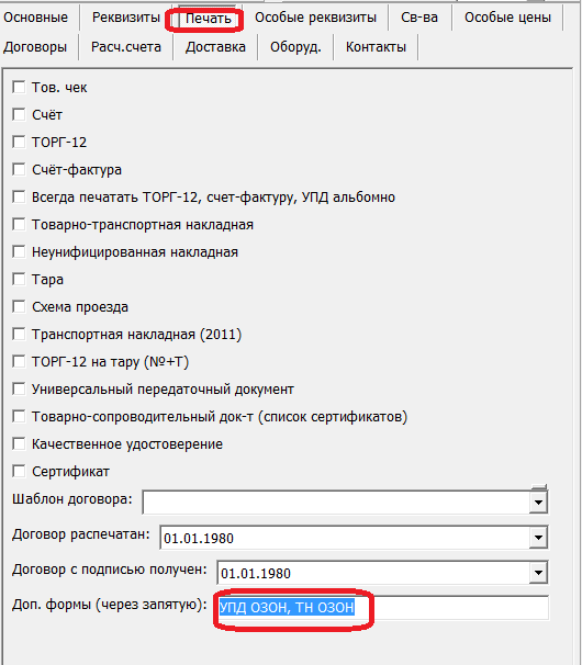 Для печати форм, требуемых интернет-магазином ОЗОН, следует скачать их, разархивировать и загрузить в программу через администрирование-дополнительные печатные формы.