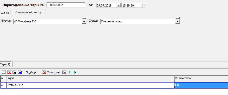 Для корректировки остатков тары на складе используются документы «оприходование тары» и «списание испорченной тары» (в меню документы - склад).