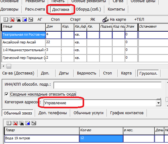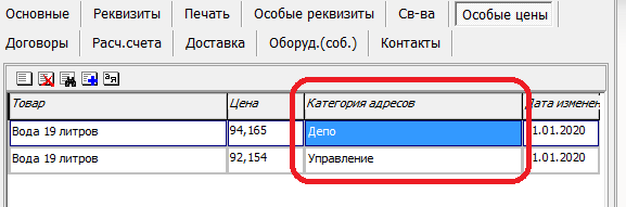 В приведенном примере адреса доставки этого клиента категории «депо» получают воду по одной цене, «управление» - по другой.