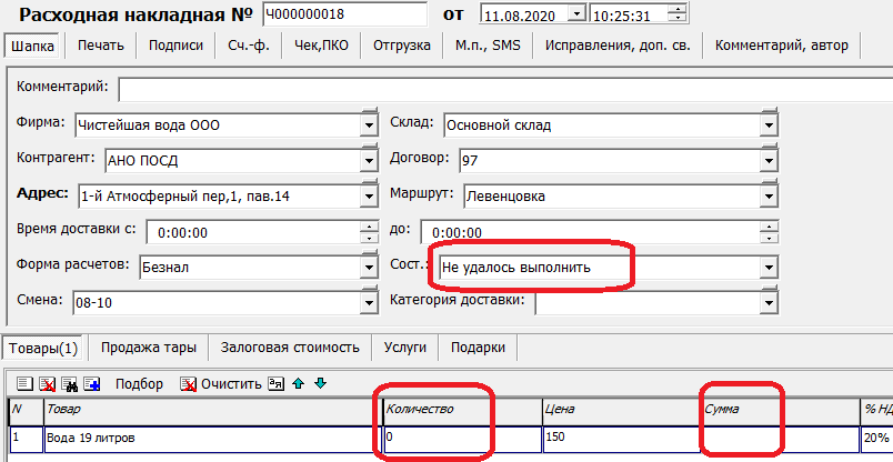 Если товар по накладной уже отправлен, просто сменить дату накладной нельзя, поэтому программа создаст новый заказ того же содержания, а количество и сумму в исходной накладной обнулит.