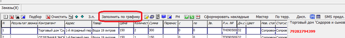 Если поле «перенос» не заполнено, накладная будет оформлена датой документа «планирование доставки». В случае, когда покупатель просит доставить воду не в этот день, а в более поздний, в поле «перенос» надо поставить дату доставки.