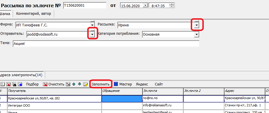 1) нажимаем «заполнить» или «мастер» (во втором случае можно сделать доп.отборы ).