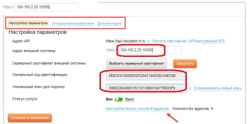 Кроме того, ваш внешний ip-адрес надо будет добавить в белый список адресов ВАТС.