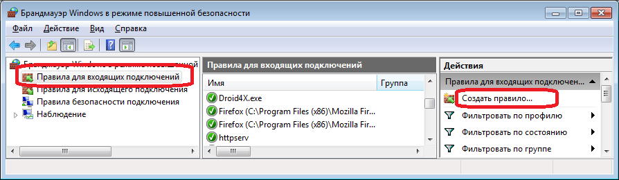Настройка брандмауэра на сервере с базой
