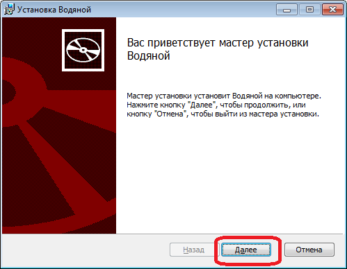 После установки программа откроется автоматически, в дальнейшем запускаем ее через ярлык «Водяной» на рабочем столе.