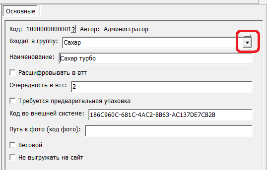 Разделам каталога на сайте соответствует справочник типов товаров в программе.