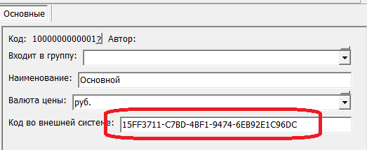 В справочнике типов цен следует ввести идентификатор типа цен Битрикс в поле «код во внешней системе».