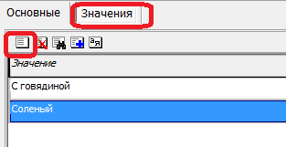 На второй вкладке вносятся все возможные значения свойства ДЛЯ ВСЕХ товаров.