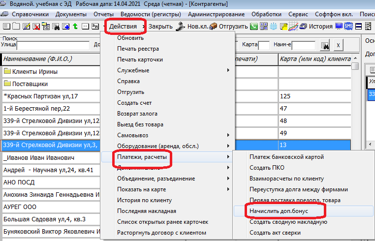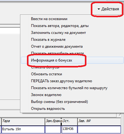 Увидеть ранее начисленные бонусы и предполагаемые начисления можно, воспользовавшись меню «действия» в накладной