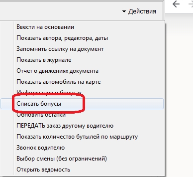 Списать баллы можно, воспользовавшись пунктом того же меню «действия»