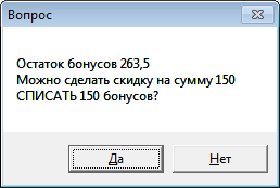 При подтверждении будет сделана скидка на указанную сумму, а бонусы спишутся со счета клиента.