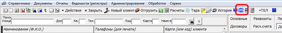 1) из справочника клиентов (кнопка «SMS» над списком).
