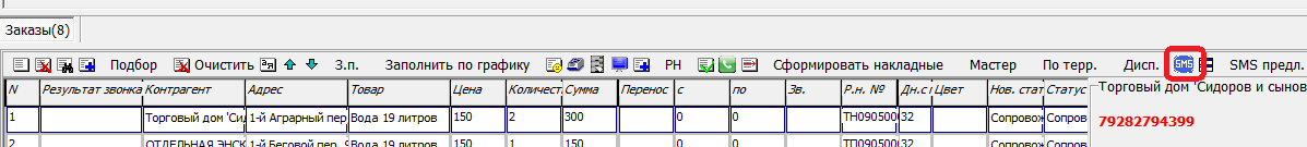 1) Кнопкой «SMS предл.» из документа "планирование доставки". Будет предложено отправить на все мобильные номера из документа текст по шаблону, задаваемому в значениях по умолчанию
